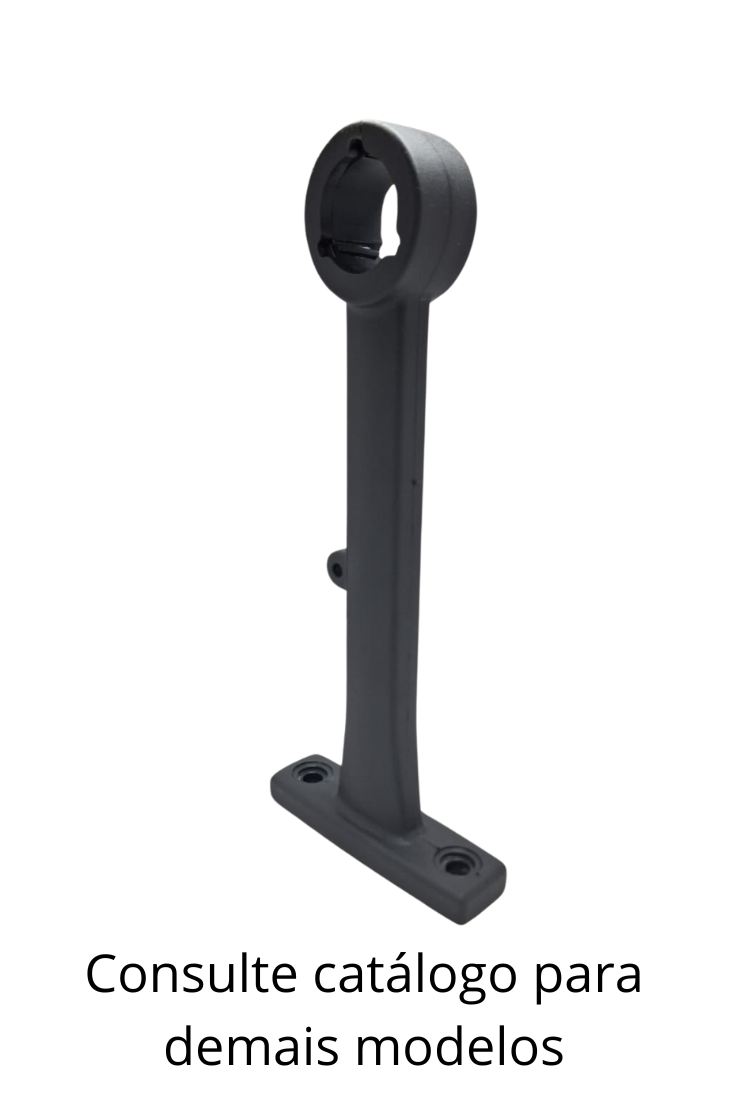 Suporte para corrimãos, com e sem passa-fios, oferecendo resistência e praticidade na instalação e uso.
